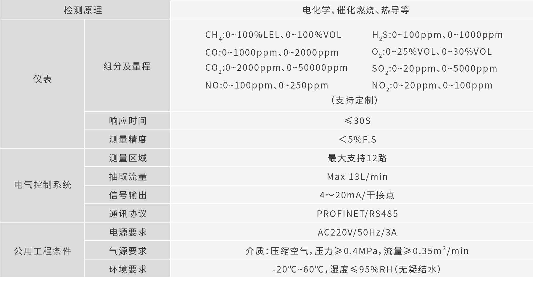 GS-GMS1500 危險(xiǎn)氣體在線監(jiān)測系統(tǒng)是一款針對有毒有害、易燃易爆等危險(xiǎn)氣體多區(qū)監(jiān)測的系統(tǒng),采用連續(xù)抽取方式,通過真空泵把危險(xiǎn)區(qū)域氣體引入到安全區(qū)域一體化控制機(jī)柜,結(jié)合電化學(xué)、催化燃燒、熱導(dǎo)等測量原理,對取樣氣體中CH4、H2S、CO、NH3、O2等氣體濃度進(jìn)行輪流監(jiān)測,具備自診斷、報(bào)警等功能,實(shí)現(xiàn)超標(biāo)就地報(bào)警并將相關(guān)信息傳送到控制室。